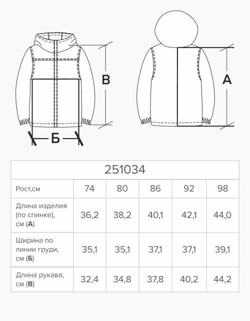 | Рост, см | 56 | 62 | 68 | 74 | 80 | 86 | 92 | 98 |